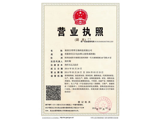 陜西百草萃生物科技有限公司,位于陜西省咸陽市秦都區(qū)濱河西路1號大秦御港城,公司成立于1996年,主要從事天然植物種植、研發(fā)、生產(chǎn)、加工、銷售為一體的高科技企業(yè)。主營醫(yī)藥原料、保健品原料、化妝品原料,精細(xì)化工原料。公司致力于人類健康保護(hù)事業(yè)“ 以科技為動力,以質(zhì)量求生存” 的本質(zhì),依托陜西高新科技技術(shù)人才和科研優(yōu)勢,已形成多學(xué)科、全方位、高層次的技術(shù)管理精英團(tuán)隊(duì)。充分利用秦巴山區(qū)的天然藥物資源,歷經(jīng)多年發(fā)展為打造百草萃生物品牌奠定了基礎(chǔ)。
